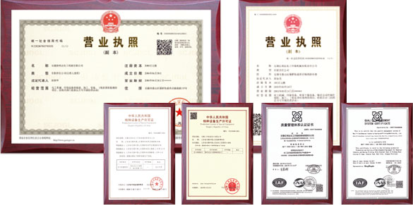 具有A2类压力容器生产许可证、辐射安全许可证,并通过了 IS09001、ISO14001、OHSAS18001等体系认证。主要容器生产车间,最大起吊能力32吨。另设有换热器设备、特种材料设备制造专门车间。主要设备有自动埋弧焊机、不锈钢自动管板氩弧焊、钛材自动管板氟弧焊、气体?;ず富⒌壤胱忧懈罨?、各种硅整流焊机等。最大卷板能力为50MM。公司拥有平台式焊接操作机、自动等离子切割机、钻床、倒角机、铣边机、剪板机、车床等各种配套设备, 并拥有无损探伤室、焊接试验室、物理实验室、化学分析室及压力实验场地。